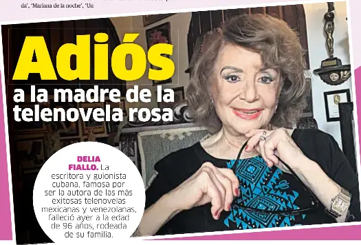 July 4, 1924) is a cuban writer and screenwriter. Ajo filloi karrierën në kubë në 1950 me emisione radiofonike para se të shkruante skenarin. Delia fiallo, escritora cubana, morreu aos 96 anos. Miami (ap) — delia fiallo, a native of cuba who was considered the mother of latin america's telenovelas she was 96. Delia fiallo, an author and screenwriter known as the mother of the latin american telenovela, has died, according to the associated press.